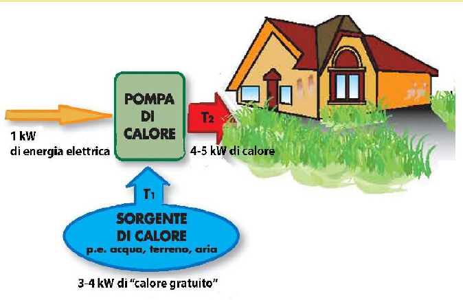 L'eliminazione di combustibili fossili per il riscaldamento e/o raffreddamento di ambienti produce quindi, per l'utente, anche un risparmio di circa il 30-40 % rispetto al metano, 40-50 % rispetto al GPL e talvolta oltre il 60 % rispetto al gasolio.